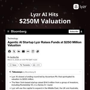 NEW JERSEY, NJ, UNITED STATES, March 15, 2026 /EINPresswire.com/ -- Lyzr AI, the full-stack agent infrastructure platform for enterprises, has been featured by Bloomberg following its recent Series A+ funding round and valuation milestone. The company announced that it has raised $14.5 million in a Series A+ round led by Accenture, with participation from investors including Rocketship VC. The funding values the New York–based startup at $250 million and represents a fivefold increase from its valuation in October.